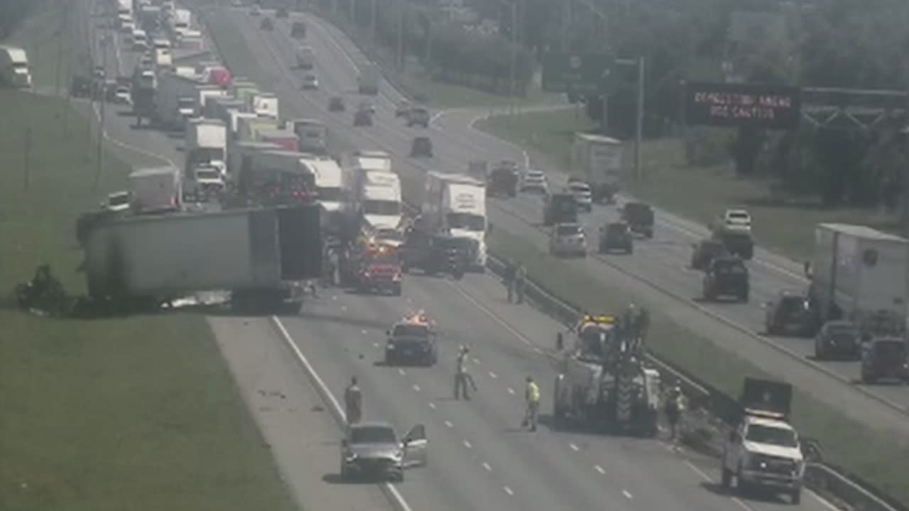 A crash involving three semi-trucks has shut down part of Floridas Turnpike in Osceola County. Police said it appears the driver of the semi was making a right turn onto Tall Pines Dr.
